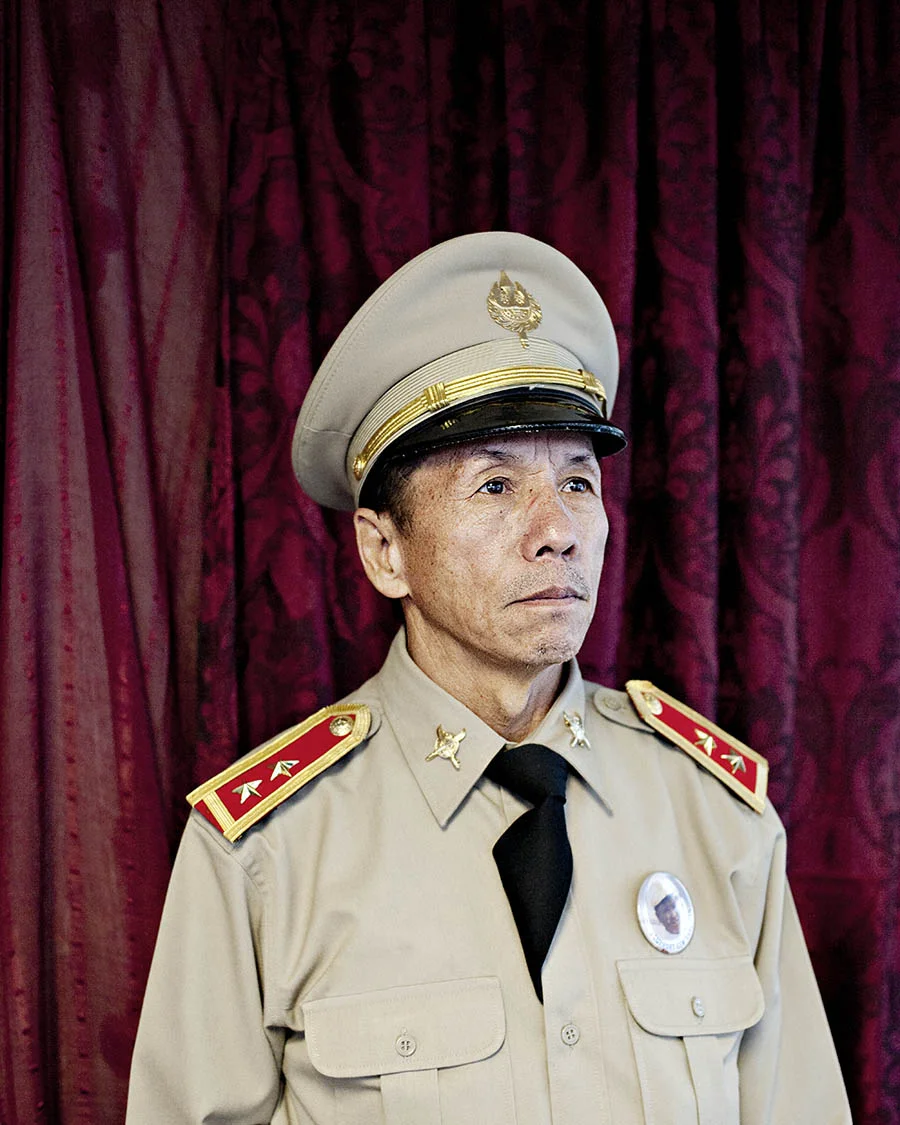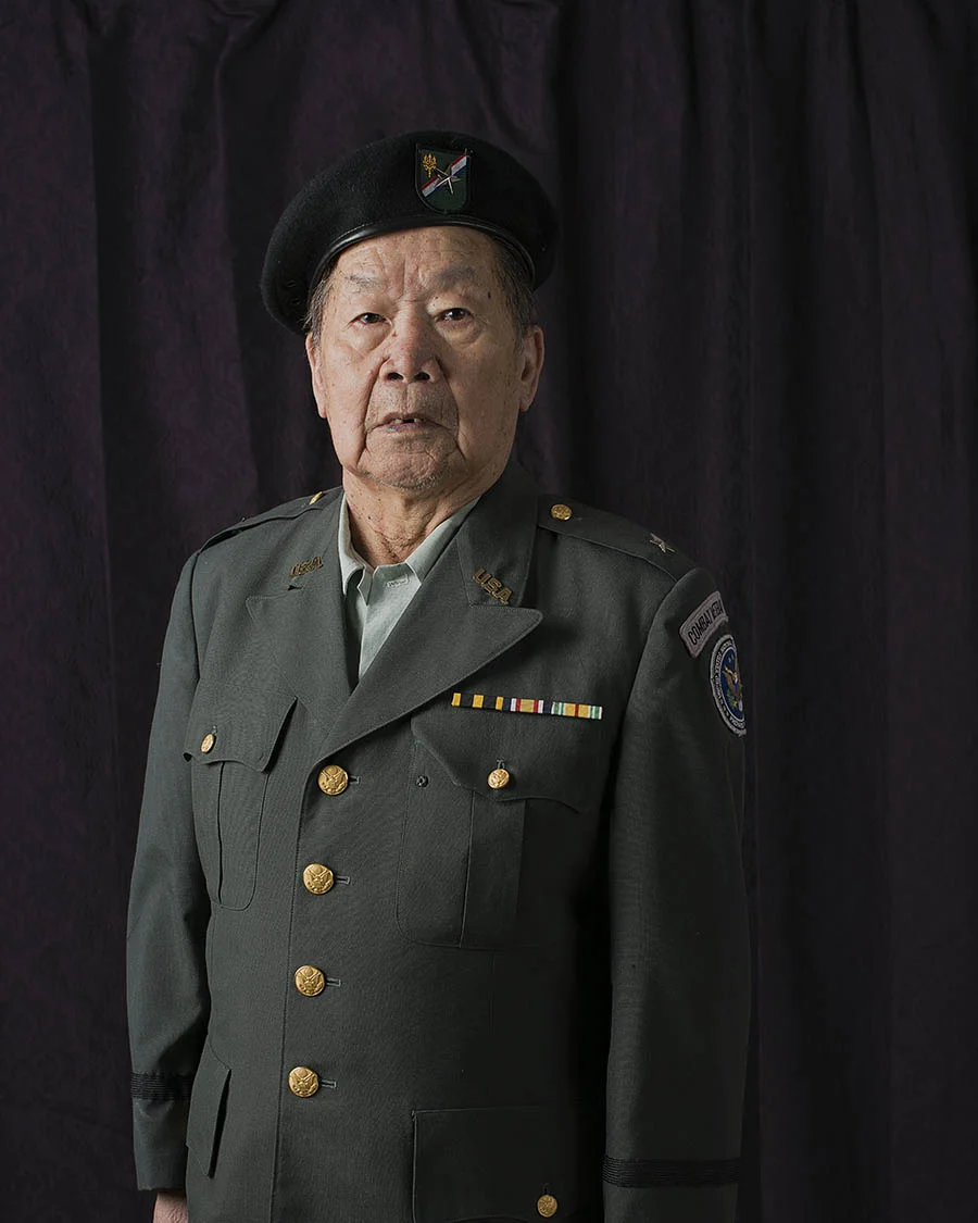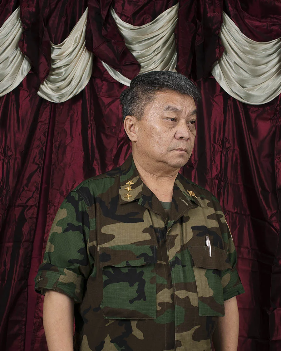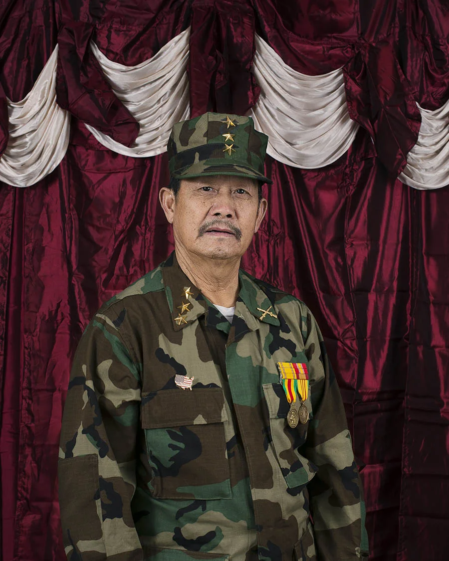“Attention!” is called when an officer enters a room occupied by enlisted personnel or cadets. I photographed these Hmong Vietnam War veterans from California, Wisconsin and Minnesota using tropes from the 19th century general paintings, Civil War soldier portraits and official presidential portraits. I did this to highlight their service in the Vietnam War because the United State military does not recognize them as American veterans. And because they are not recognized, Hmong veterans buy their own uniforms, medals and ribbons to insert themselves in the United States military and history. The uniforms they wear are important because it serves as a reminder of their services and their desire to be recognized by the United State Military. For these veterans, the war and their services are reminders of a life they gave up in Laos for their American allies, the very life they hope to someday go back to.